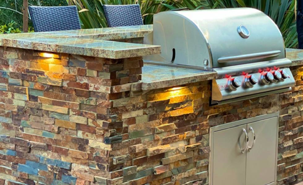 Outdoor fire pits, stone veneer, brick, and porcelain tiles